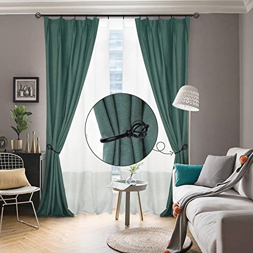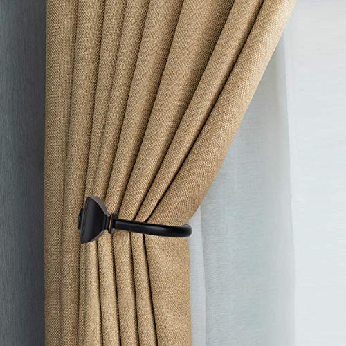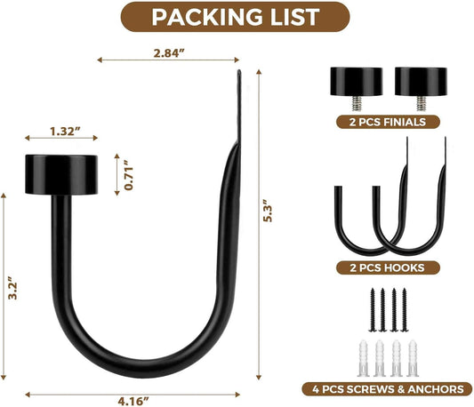 KAMANINA Curtain Holdbacks for Wall, Black Curtain Tiebacks Wall Mounted, Curtain Hooks Holders for Drapes, Modern Cap Finials (2 Pack)