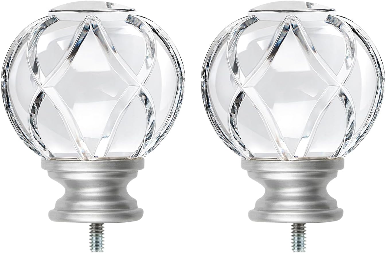 KAMANINA Crystal Netted Texture Replacement Finials for 1 or 7/8 Inch Curtain Rods, Sliver Drapery Rod Ends with M6 Standard Screws, Set of 2